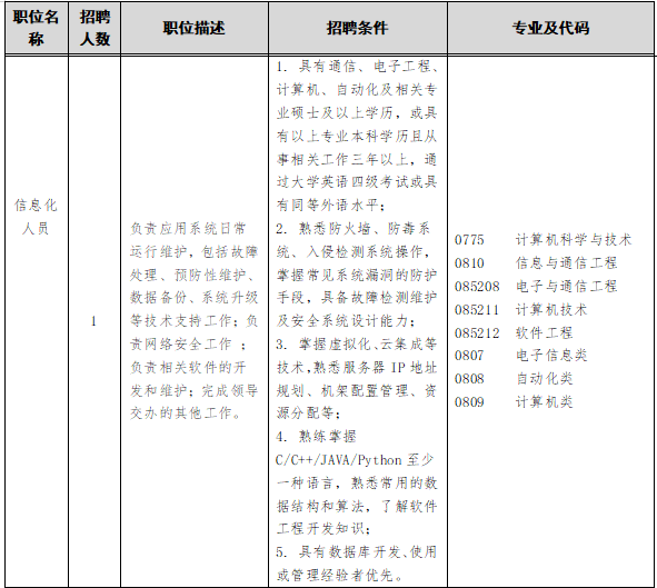 根据工作需要,福建分中心2022年拟计划面向社会招聘行政人员(信息化岗位)1名。