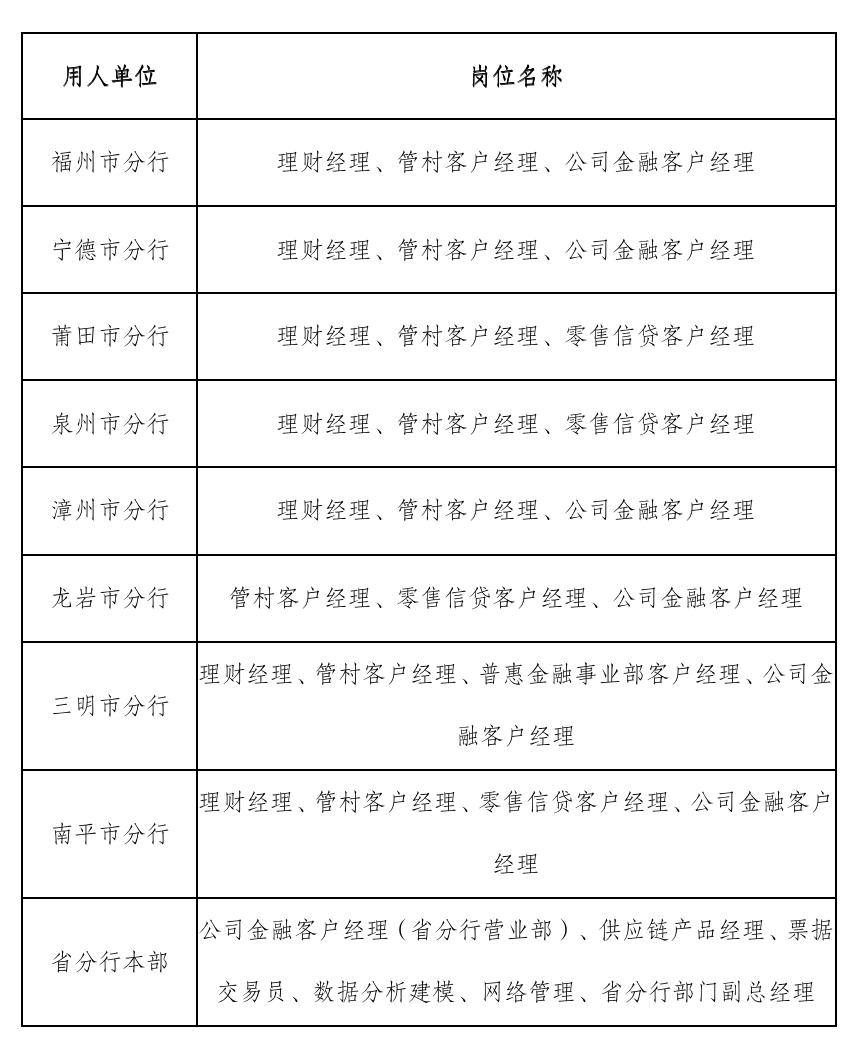 现因业务发展需要,全省(不含厦门)邮储银行诚聘英才,热诚欢迎勇于接受挑战的有识之士,加入我们的行列。