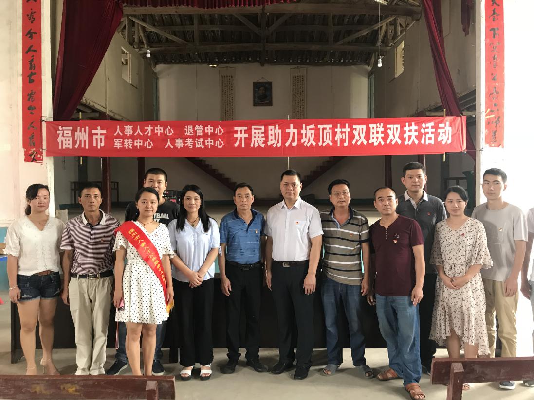 为充分发挥福州市人事人才公共服务中心各党支部和党员干部在打赢脱贫攻坚战中的战斗堡垒和先锋模范作用,7月6日上午,福州市人事人才公共服务中心党委牵头组织人事综合楼各支部走进连江县丹阳镇坂顶村,发挥党建作用,助力精准扶贫。