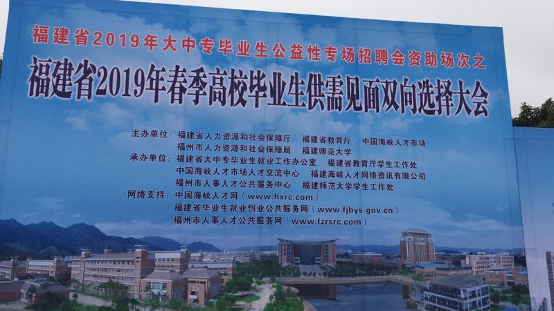 为更好地服务新福建建设,搭建毕业生与用人单位双向选择交流平台,创造公开、公平、公正的选人择业环境,促进2019届高校毕业生就业,福建省人力资源和社会保障厅、福建省教育厅、中国海峡人才市场联合福州市人力资源和社会保障局于1月5日上午在福建师范大学旗山校区东区篮球场举办的福建高校毕业生供需见面会。