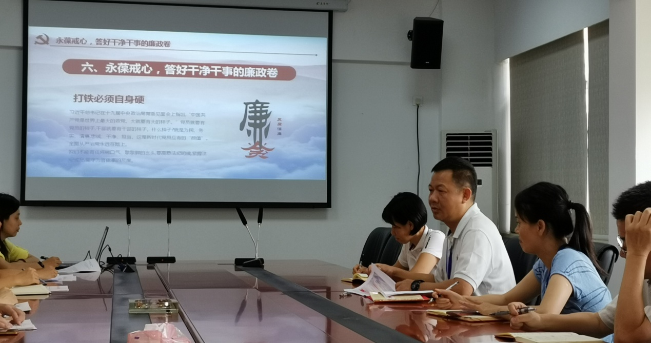 刘登祥主任首先阐述了“不忘初心、牢记使命”的深刻意义,“不忘初心、牢记使命”主题教育旨在为人民谋幸福、为中华民族谋复兴。全体党员干部要真正理解初心使命的丰富内涵,深刻领会初心使命的历史价值,牢固践行初心使命的时代重任,坚定信念跟党走,做习近平新时代中国特色社会主义思想的信仰者和实践者。接着他从“忠心、真心、恒心、匠心、静心、戒心”六个方面结合中心工作实际对如何做好新时代的答卷人进行了重点论述和具体要求,最后他提出,希望全体党员干部无私奉献有作为,做“为民、务实、清廉”的先行者和践行者。