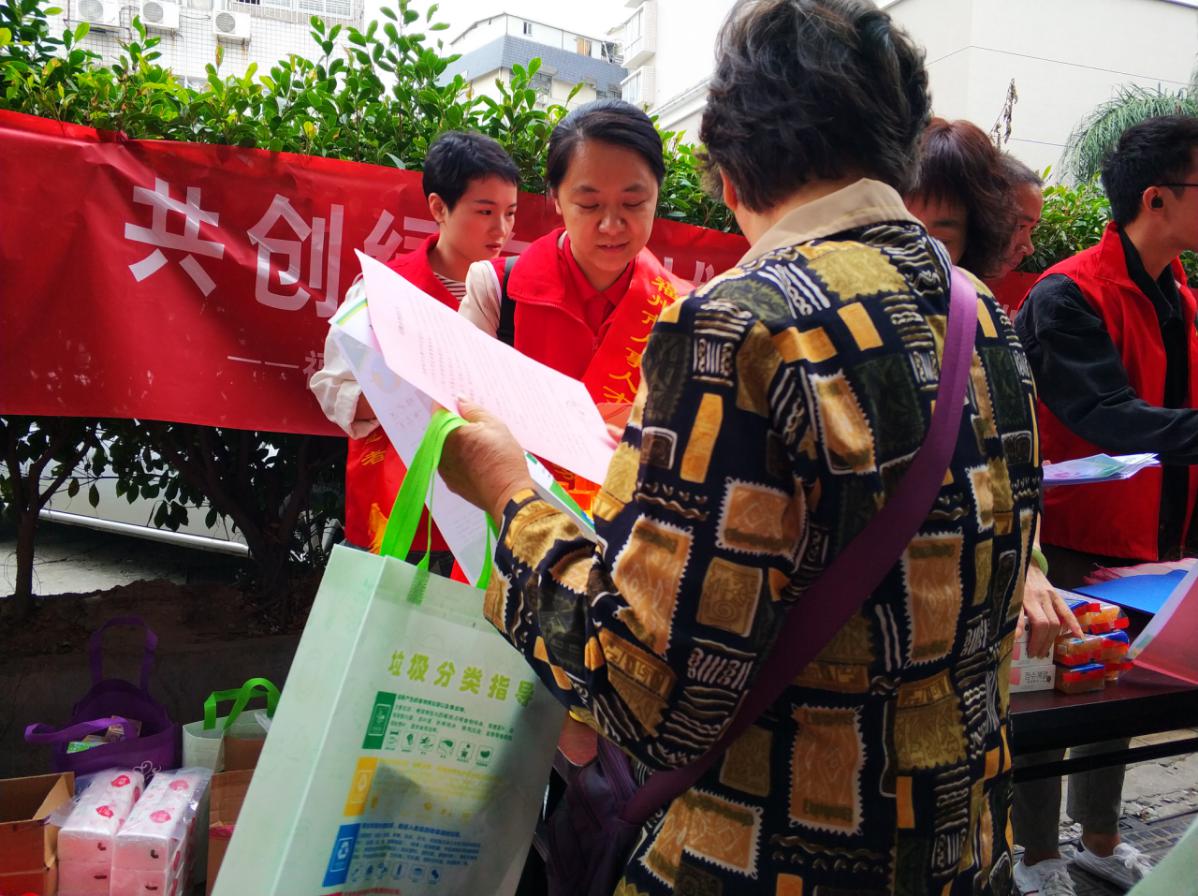 为推动生活垃圾分类志愿服务工作制度化、常态化,不断提升市民垃圾分类准确度、信任度,调动全民参与积极性、主动性,中心志愿者与洋四社区工作人员一起向过往居民普及垃圾分类知识。通过分发垃圾分类宣传资料、环保垃圾袋等形式吸引居民群众,倡导社区居民垃圾分类从自身做起;号召大家积极行动起来,人人参与垃圾分类,提高环保意识。