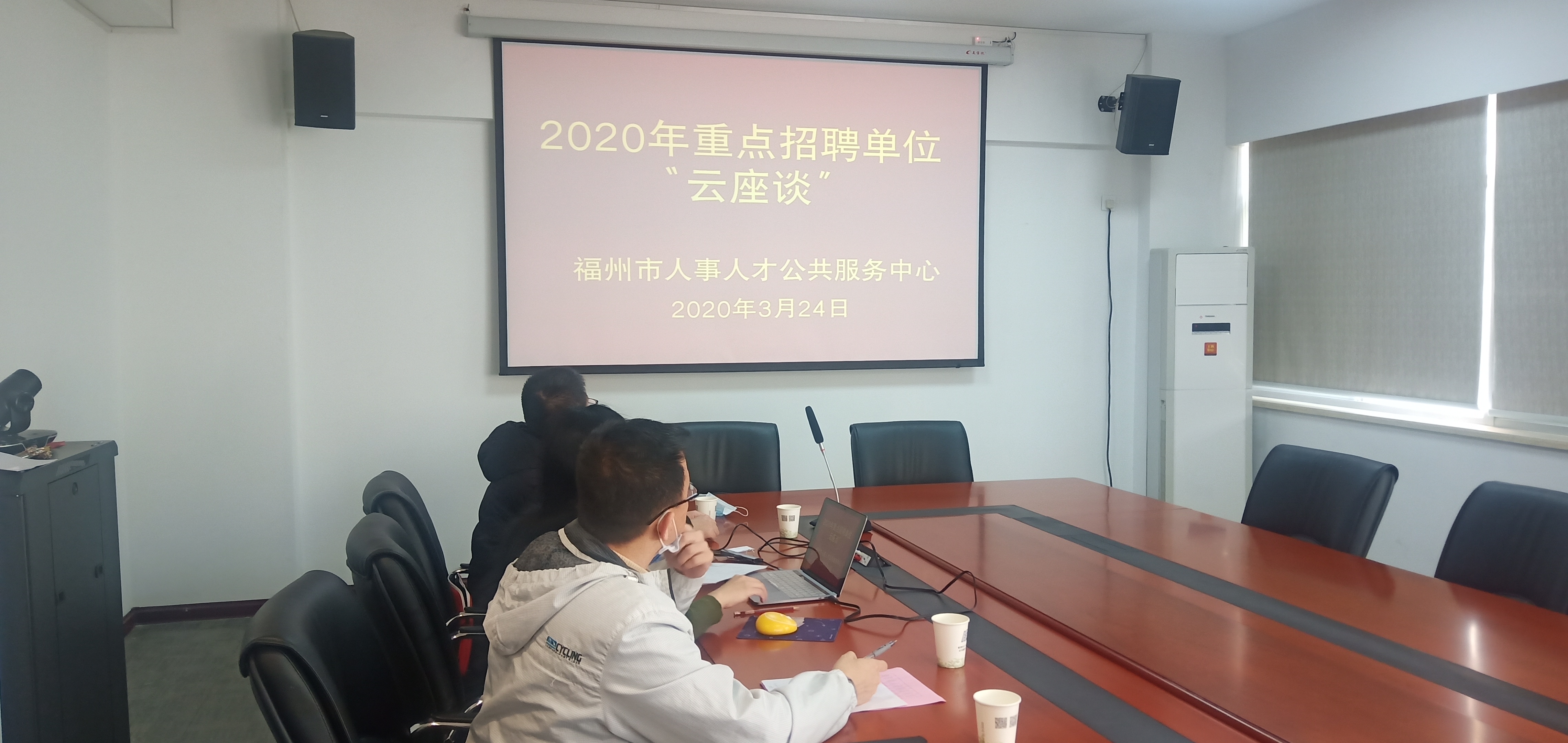 “福州人社求职招聘平台”上线运营已一段时间,为了更好地开展2020年福州市用人单位引才用工工作,3月24日上午,福州市人事人才公共服务中心、就业中心组织了8家重点招聘单位上线开展“云座谈”。