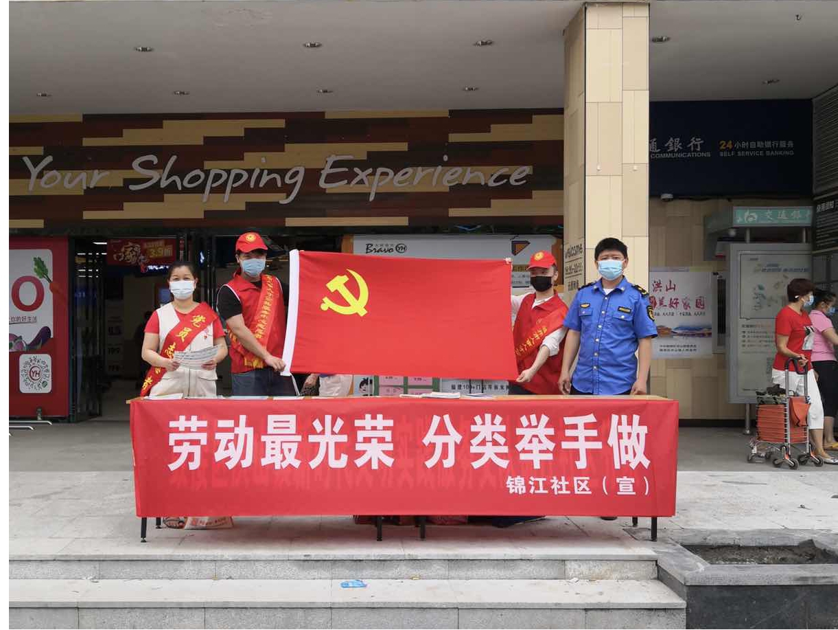 为营造和谐、绿色的社区环境,进一步提高辖区居民的垃圾分类意识,5月19日上午人事人才中心与锦江社区共建开展了“劳动最光荣,分类举手做”主题宣传活动,活动中,志愿者们向社区居民派发垃圾分类宣传册并进行垃圾分类知识科普,让居民了解如何正确的分类垃圾,倡导居民定时定点投放垃圾,不要误时投放。
