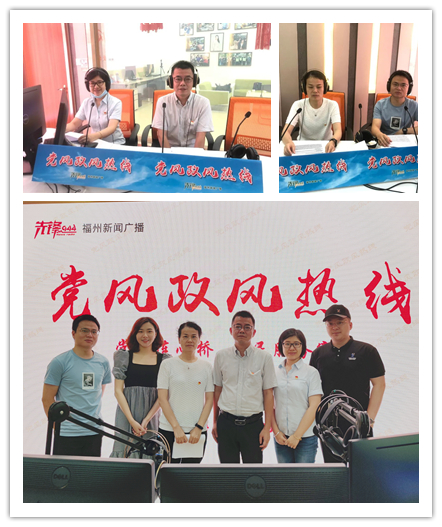 6月3日上午,中心按照市行政(市民)服务中心管委会统一安排,由中心二级主任科员林宇星率队,做客福州新闻广播“党风政风热线”直播室,协同中心三级主任科员阮诚亮、窗口服务科科长陈舒捷及中心人才服务科副科长黄庆武同志通过热线电话和网络平台直接与广大市民进行沟通交流。
