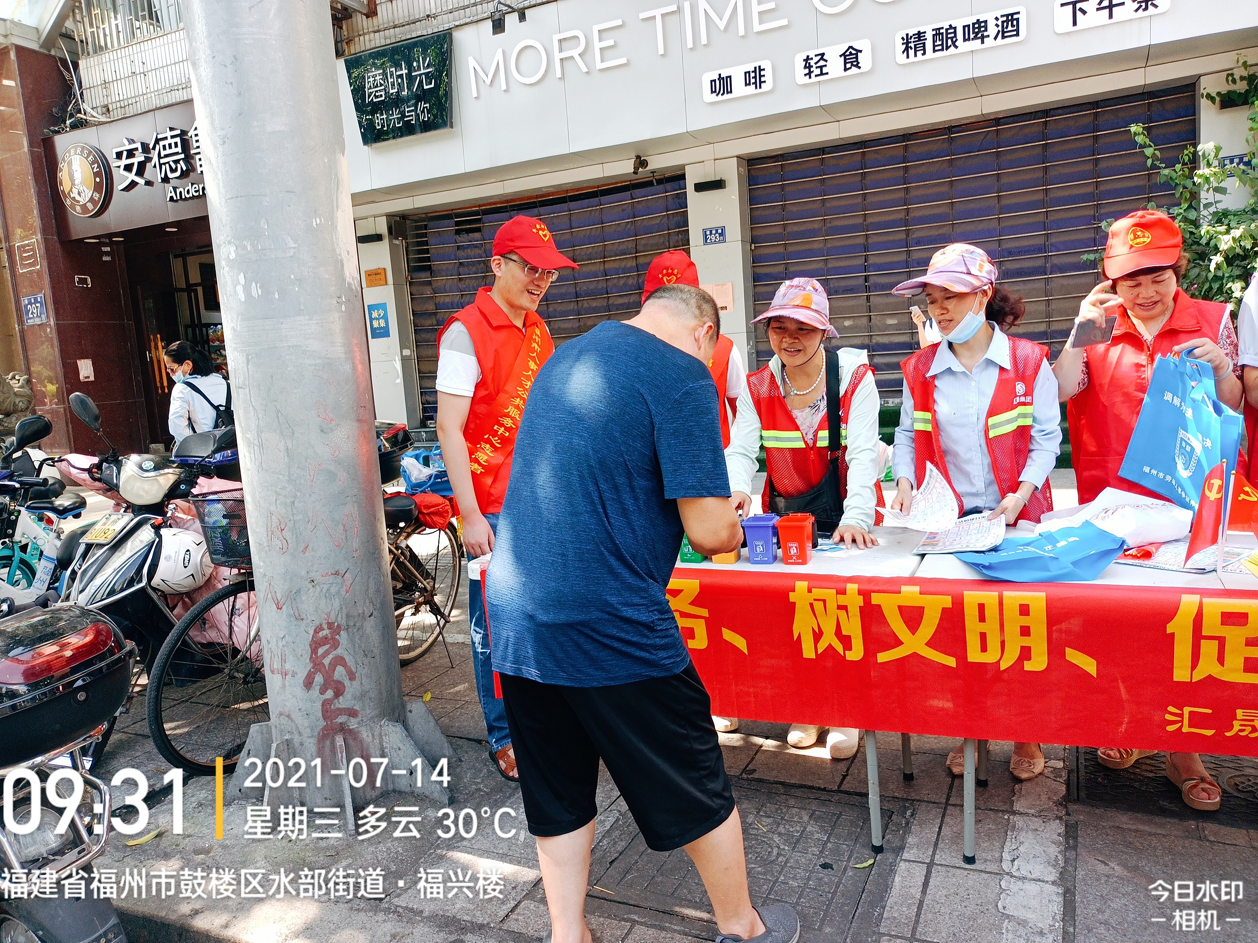 为了增强社区居民对垃圾分类知识的了解,积极参与到垃圾分类的行动中来。2021年7月14日上午,福新社区联合福州市人事人才公共服务中心党员志愿者在水部街道开展垃圾分类宣传活动。