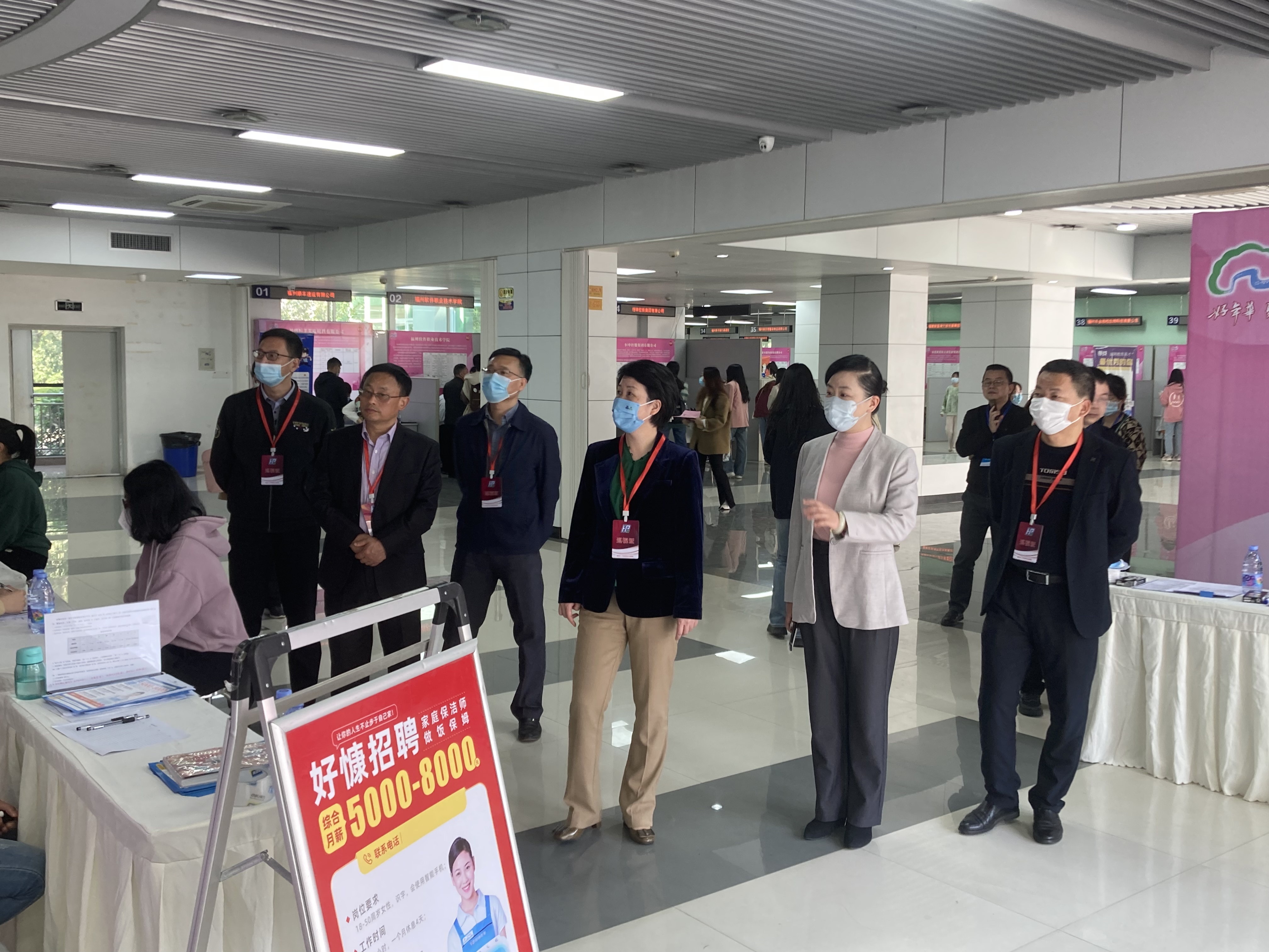 省人社厅就业局二级调研员詹永忠、省妇联党组成员、副主席占永琼等部门领导带队巡场指导。